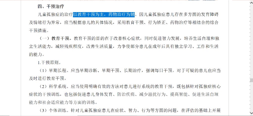 衛(wèi)生部辦公廳印發(fā)的《兒童孤獨癥診療康復指南》中指出,兒童孤獨癥治療以教育干預為主,藥物治療為輔。因此,藥物治療對于兒童孤獨癥只是對癥、暫時、輔助措施,教育訓練發(fā)揮著更重要的作用。