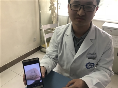 “偶然間,發(fā)現(xiàn)有小朋友的襪子忘在診室了,粉紅色的襪子上印著小豬佩奇。”楊磊回憶。對(duì)于小豬佩奇,楊磊并不陌生,家里已經(jīng)有了小朋友,小豬佩奇是楊磊小孩最喜歡的卡通人物之一。楊磊靈機(jī)一動(dòng),決定在左手手背上畫一個(gè)小豬佩奇。