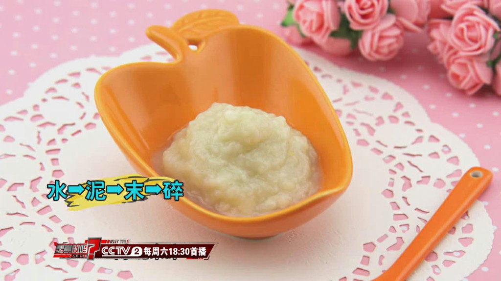 晁爽說:“從輔食的添加來講,應(yīng)該是從泥糊狀食物開始,叫‘水泥末碎’。寶寶生下來,先喝的是奶或者水,它是液體的。然后,要逐漸轉(zhuǎn)化成固體食物,經(jīng)過泥、末、碎的過程。泥糊狀食物是人類營養(yǎng)史上不可逾越的一個階段,它能夠訓(xùn)練寶寶的吞咽功能,同時能夠提供寶寶所需要的一部分營養(yǎng),我們建議,除了添加米粉、菜泥以外,如果要添水果,應(yīng)該以果泥的形式添加!