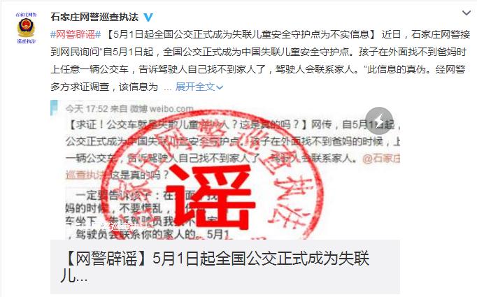 【真相】2016年類似的謠言就曾多次出現(xiàn),網(wǎng)警媒體都進(jìn)行了辟謠。所謂的“兒童守護(hù)點(diǎn)”還有多個(gè)版本,比如銀行、書店、藥店等,都被冠以“中國失聯(lián)兒童守護(hù)站”的稱號,日期也多種多樣,從1月1日到12月1日,幾乎遍布一年四季。4月23日起,石家莊、成都、清遠(yuǎn)、馬鞍上等全國多地網(wǎng)警對此進(jìn)行辟謠。