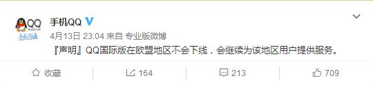 【傳聞】由于歐盟的《通用數(shù)據(jù)保護(hù)條例》將于5月25日正式生效,QQ國際版將從5月20日后不再為歐洲用戶提供服務(wù)。