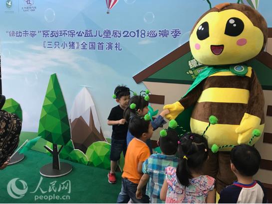 作為“五年計(jì)劃”重要部分,“綠動(dòng)未來”系列環(huán)保公益兒童劇的首部作品《三只小豬》將走進(jìn)北京、杭州、上海、蘇州、寧波、合肥、武漢、長沙、青島和深圳十個(gè)城市!度恍∝i》是百老匯著名的兒童合家歡音樂劇,由“開心麻花”引入國內(nèi)。經(jīng)過改編的《三只小豬》,被賦予了全新的環(huán)保理念,融入了新角色——“綠動(dòng)未來”環(huán)保公益平臺(tái)卡通形象“小青蜂”。在當(dāng)日的首演中,“小青蜂”不斷向小朋友們傳播環(huán)保知識(shí),讓孩子們在歡樂看劇時(shí)感悟自然、綠色、成長與愛。