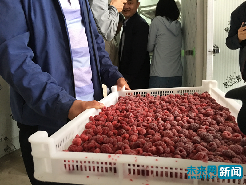 2018年7月10日,康樂縣上灣鄉(xiāng)巴馬村村民剛采摘下來的高原樹莓儲存在當?shù)氐摹肮蚕砝鋷臁敝。未來網(wǎng)記者賀卓輝 攝