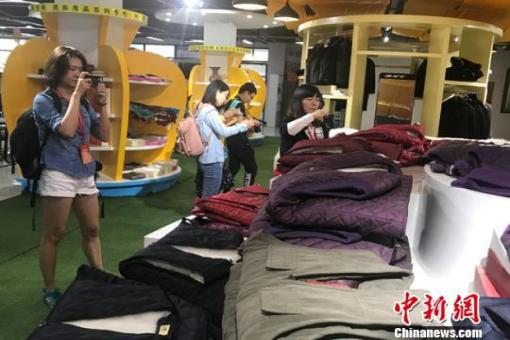 在廣河縣電商創(chuàng)業(yè)孵化園中,由當(dāng)?shù)厝嗽凇昂髲S”中制作的服飾在“前店”中受民眾熱捧。艾慶龍攝 (脫貧攻堅在行動)甘肅廣河傳統(tǒng)“針線活”走俏 農(nóng)婦掙錢顧家“兩……