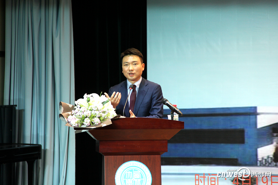 康輝向現(xiàn)場學生講述自己是如何進入中央電視臺的。