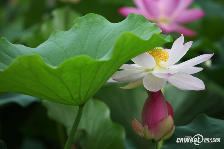 曲江池荷花爭(zhēng)相開放 端莊美麗引游人