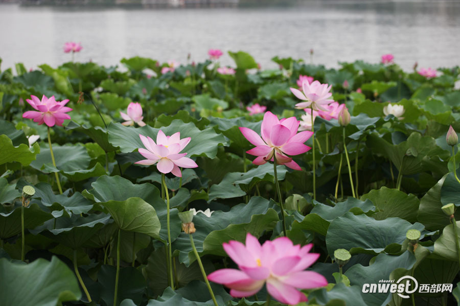 曲江池荷花爭(zhēng)相開(kāi)放 端莊美麗引游人