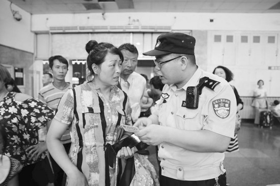 西安火車(chē)站執(zhí)勤民警在核實(shí)旅客車(chē)票信息