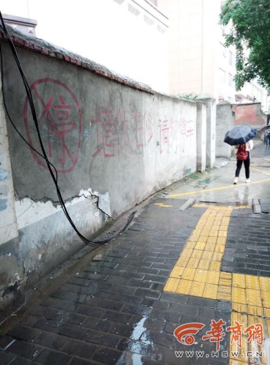 近日,市民張先生向華商報(bào)24小時(shí)新聞熱線029-88880000反映,稱南二環(huán)太乙嘉園小區(qū)外人行道上有一段長約10米的磚墻出現(xiàn)裂縫。張先生稱,小區(qū)業(yè)主已經(jīng)入住4年多,大約3年前該圍墻上就被寫了“危墻”二字,“圍墻里面有幾間門面房,但一直沒有使用,后來有人在門面房外蓋了一間活動(dòng)板房,現(xiàn)被一家房產(chǎn)中介租賃。”