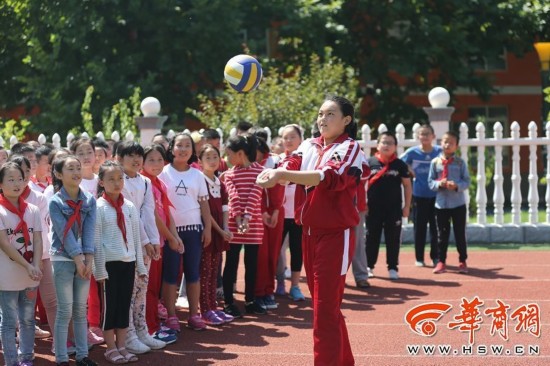 昨日上午11時(shí)許,華商報(bào)記者在長(zhǎng)安師范附屬小學(xué)的操場(chǎng)上看到正上體育課的楊肖文欣,她站在班級(jí)最前列,同學(xué)大部分只有她肩膀高。