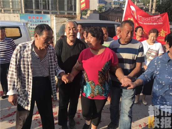 下午5點(diǎn)多鐘,李大叔走出村口迎接這失散了22年的女兒,鞭炮,鑼鼓聲聲震天, 警車,警燈不斷閃爍。