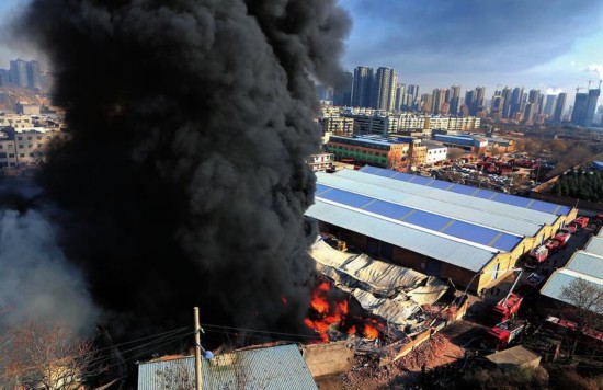 一位重慶阿姨,站在著火倉(cāng)庫(kù)外面,沒(méi)說(shuō)幾句就哭了,“放在里面的貨全燒光了!敝貞c阿姨在西安賣(mài)塑料制品,在這個(gè)倉(cāng)庫(kù)租了1000多平方米當(dāng)作庫(kù)房,上下兩層高,“全部的貨價(jià)值1000多萬(wàn)元,進(jìn)出貨物的電子臺(tái)賬、賬簿也在倉(cāng)庫(kù),我早上4點(diǎn)多還新進(jìn)了一批,正準(zhǔn)備往倉(cāng)庫(kù)放,車還沒(méi)到這里,就看見(jiàn)著火了!