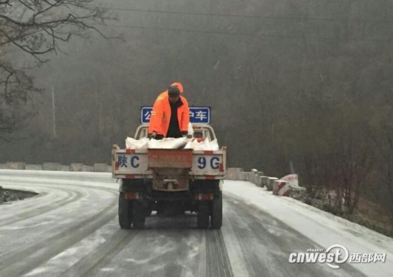 寶雞降雪,212省道對(duì)四軸以上貨車實(shí)行交通管制。