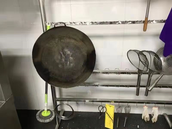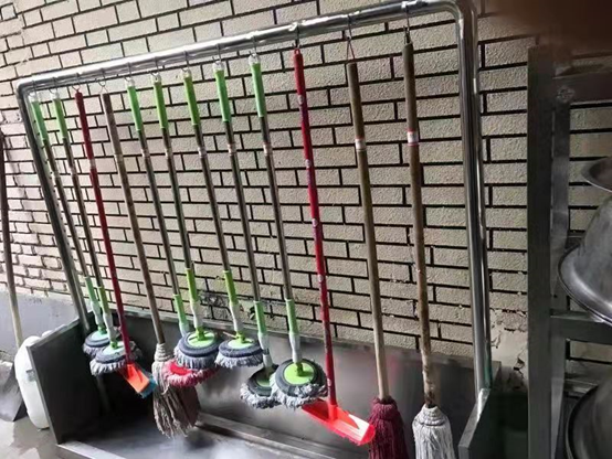 清洗煙罩專用拖把,有明確標識,統(tǒng)一懸掛在操作間室外東南角