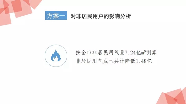 非居民用氣售價(jià)由現(xiàn)行的2.30元每立方米調(diào)整為2.25元每立方米,下調(diào)0.05元每立方米。