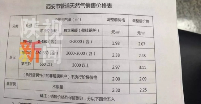 一是調(diào)整居民用氣銷售價(jià)格。綜合中省調(diào)價(jià)因素,西安市需要疏導(dǎo)上游門站價(jià)格增幅0.056元每立方米。