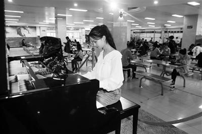 學(xué)生在食堂里彈鋼琴 記者 黨運(yùn)攝 大學(xué)食堂里一架鋼琴的亮相,平添了幾分文藝范。學(xué)生小張說(shuō),聽(tīng)著鋼琴曲吃飯,愣是把一碗油潑面吃出西餐的感覺(jué)來(lái)。 演奏者都是……