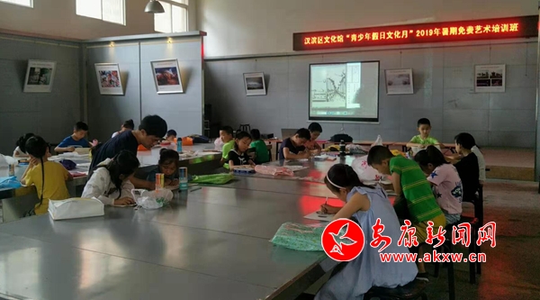 本網(wǎng)訊 (通訊員 惠星)俗話說“天不怕地不怕,就怕熊孩子放暑假!”,轉(zhuǎn)眼之間,一年一度學(xué)生暑假又開始了,在近兩個(gè)月的假日里,如何讓孩子能夠度過一個(gè)充實(shí)的假期生活讓不少家長犯了難。而與此同時(shí),漢濱區(qū)文化館與各鎮(zhèn)、辦分館已精心準(zhǔn)備,推出了“文化小康行動(dòng)”系列品牌文化惠民活動(dòng)——“青少年假日文化月”藝術(shù)免費(fèi)培訓(xùn),組織專業(yè)文化藝術(shù)工作者開展繪畫、書法、舞蹈、泥塑等豐富多彩的免費(fèi)藝術(shù)普及課程,讓青少年學(xué)生在假日里享受到優(yōu)質(zhì)的公共文化服務(wù)。