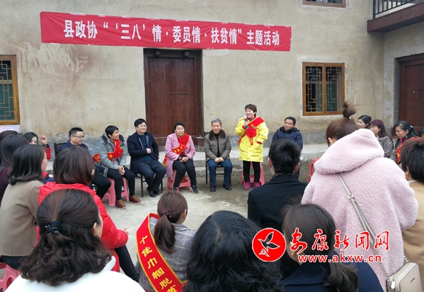 本網(wǎng)訊(通訊員 姚富軍)人勤春來早,三八情意濃。3月7日上午,漢陰政協(xié)組織全縣30余名女政協(xié)委員、蒲溪鎮(zhèn)10名巾幗脫貧標(biāo)兵,開展“‘三八情’•委員情•扶貧情”主題活動,共同迎接第109個“三八”國際勞動婦女節(jié)。縣政協(xié)主席史正林,副主席廖靈君,縣政協(xié)秘書長和蒲溪鎮(zhèn)黨委負(fù)責(zé)人參加。