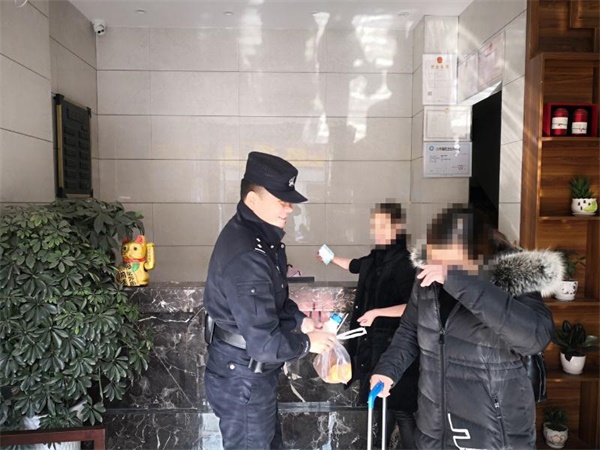 通過緊張有序的工作,很快查明該女子在縣城某賓館,民警快速前往,在該賓館找到正在自殘的湖南女子涂某,此時涂某雙手腕部均被銳器劃傷,民警通過大量勸說工作,并買來藥物,對涂某的傷口進行包扎,看到忙得滿頭大汗的民警,涂某逐漸恢復理智,放棄輕生。