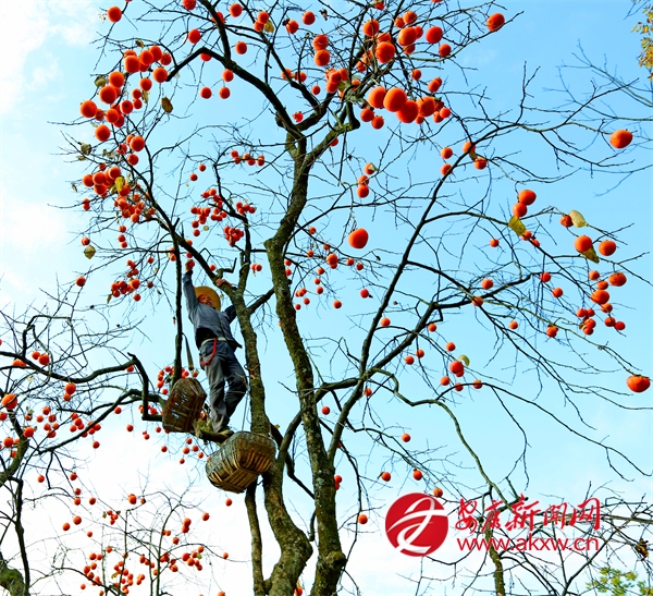 眼下正是柿子成熟的季節(jié),白河縣城關(guān)鎮(zhèn)安福村芍藥花園區(qū)附近漫山遍野的柿子,像一個(gè)個(gè)橘黃色的小燈籠掛滿枝頭。uvX安康新聞網(wǎng)